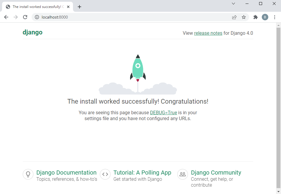 Open your web browser and check the running app on the localhost (http:\\127.0.0.0.1:8000)